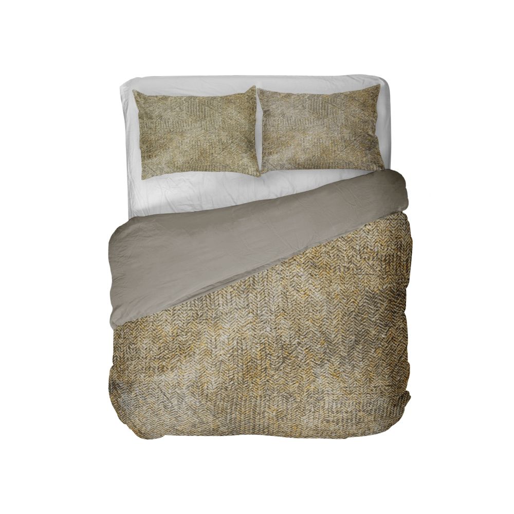 Dekbedovertrek Iwaki heeft een grafische zigzag print met op de achtergrond een verloop van verschillende kleuren. Het overtrek is goed te combineren met een zandkleurig hoeslaken. Om de Ikawi er echt uit te laten springen, kun je kiezen voor een okergeel hoeslaken. Deze kleur komt weer terug in het overtrek.