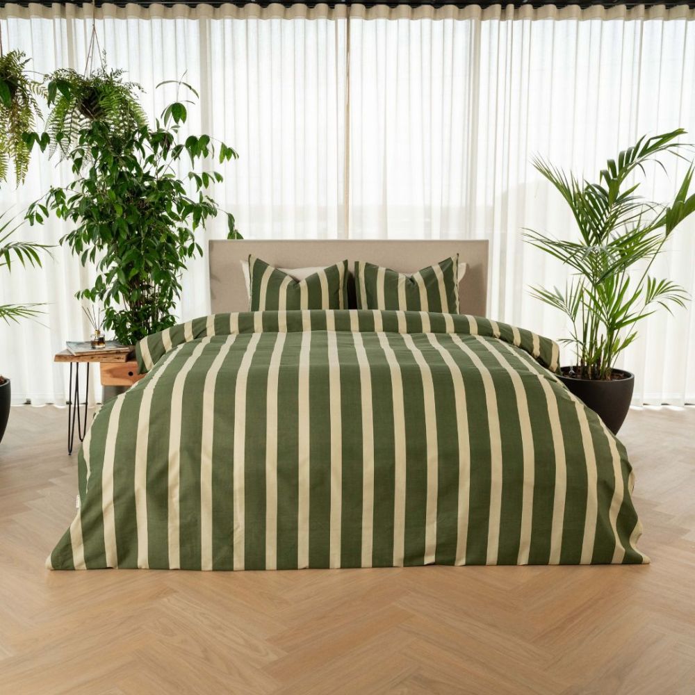 Dit luxe overtrek van 100% katoensatijn is een perfecte combinatie van comfort en stijl. Het dessin met elegante strepen geeft je slaapkamer een tijdloze en rustige uitstraling. Het overtrek draagt het OCS-certificaat, wat staat voor duurzame productie met biologisch katoen. De kleuren zijn gebaseerd op onze Saya collectie, waardoor ze perfect te combineren zijn.