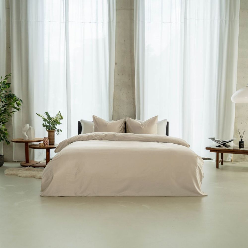 Dit dekbedovertrek is gemaakt van katoen-satijn: een luxe en zachte stof die bekendstaat om haar subtiele glans en soepele gevoel. Het combineert de natuurlijke ademende eigenschappen van katoen met een satijnweving. Al onze dekbedovertrekken hebben een totale lengte van 260 cm, waardoor deze perfect passen over lange dekbedden en extra instopruimte biedt.