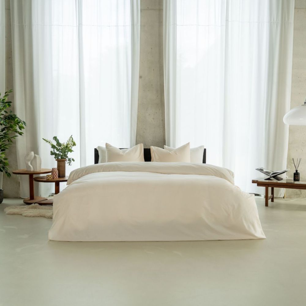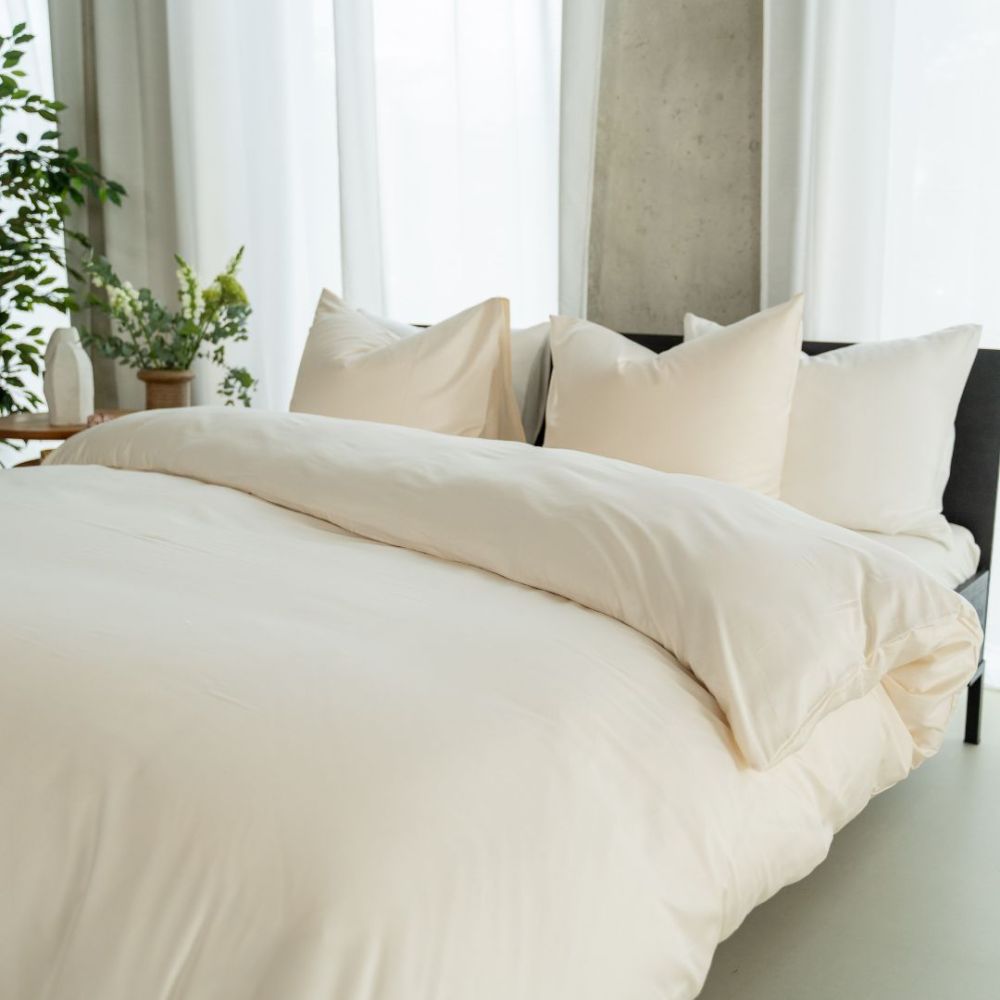 Dit dekbedovertrek is gemaakt van katoen-satijn: een luxe en zachte stof die bekendstaat om haar subtiele glans en soepele gevoel. Het combineert de natuurlijke ademende eigenschappen van katoen met een satijnweving. Al onze dekbedovertrekken hebben een totale lengte van 260 cm, waardoor deze perfect passen over lange dekbedden en extra instopruimte biedt.