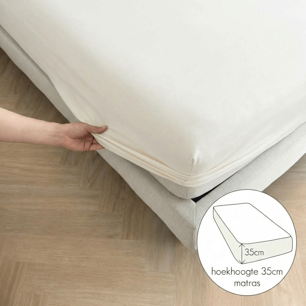 Dit hoeslaken is gemaakt van een luxe mix van 70% bamboe en 30% katoen. Bamboe staat bekend om zijn verkoelende eigenschappen, waardoor dit hoeslaken fris en verkoelend aanvoelt op de huid. Terwijl katoen extra stevigheid en duurzaamheid biedt. Door de jersey gebreide stof voelt dit hoeslaken zacht, soepel en licht elastisch aan, maar jersey zorgt er ook voor dat die mooi strak om jouw matras blijft liggen.