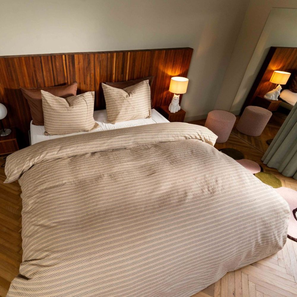 Dekbedovertrek Lueso voelt als thuiskomen in een knus winterhuisje, ergens midden in de natuur. Het dessin bestaat uit een fijne, ritmische allover print in warme aardetinten. Dankzij de Cloud Brushed van de samenstelling katoen-flanel voelt dit dekbedovertrek extra comfortabel aan op de huid. Ideaal voor mensen met een gevoelige huid of wie houdt van een wollig-zacht gevoel. Hoewel flanel bekend staat om zijn warmte, blijft het 100% katoen en dus ademend. Dat betekent warm zonder zweten. Waardoor jouw lichaamstemperatuur perfect in balans zal blijven tijdens je diepe slaap.