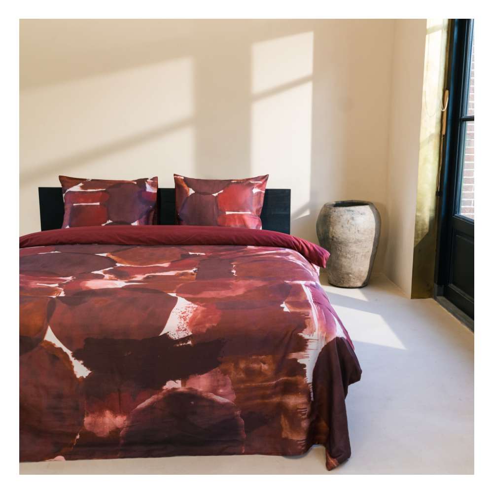 Abstrakt und doch figurativ: Das Oguni-Motiv scheint wie mit einem Pinsel aufgemalt. Die Flecken mögen zufällig erscheinen, aber sie wurden mit Präzision platziert, ganz im Sinne von Wabi-Wabi: perfekt unvollkommen. Dieser Bettbezug ist aus 100% Bio-Baumwollsatin gefertigt. Die Baumwolle ist GOTS-zertifiziert. Dieses Design ist in tiefem Dunkelrot oder in kräftigem Grün erhältlich.