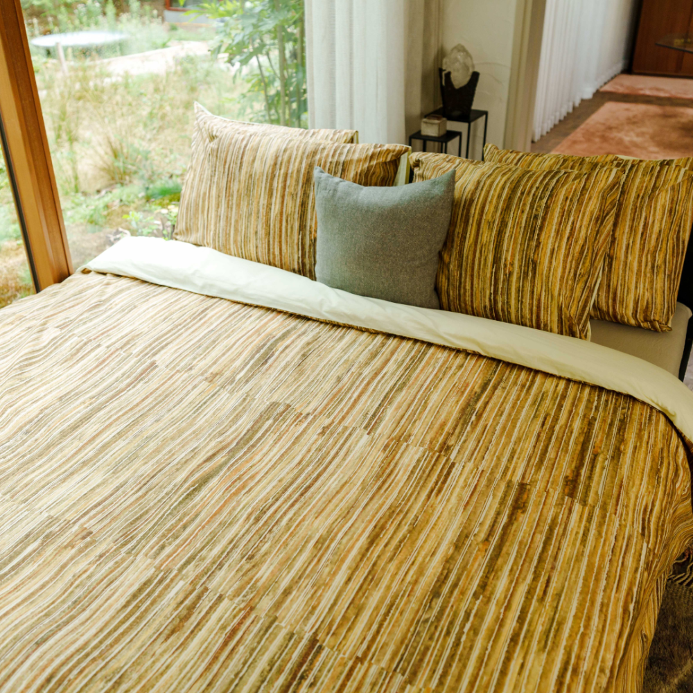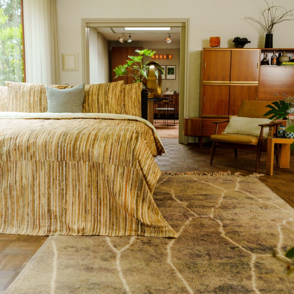 Oota är ett påslakan med ett underbart tryck i bruna / beigea nyanser. Överdraget innehåller en randig design i naturliga färger och därför har den ett varmt utseende.