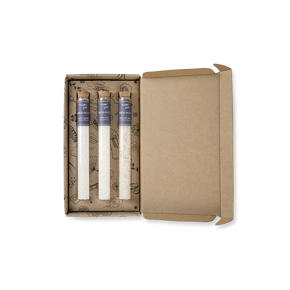 Deze originele giftset is erg leuk om cadeau te geven of te krijgen. De giftset bestaat uit 3 Kayori shots welke gevuld zijn met 3 verschillende soorten shots, namelijk; badzout, dodezeezout en badkaviaar. De 3 verschillende shots zijn de sleutel tot totale ontspanning, gebruik ze bad om heerlijk tot rust te komen. De Kayori shots zijn gemaakt van natuurlijke materialen, vegan & dierproefvrij.