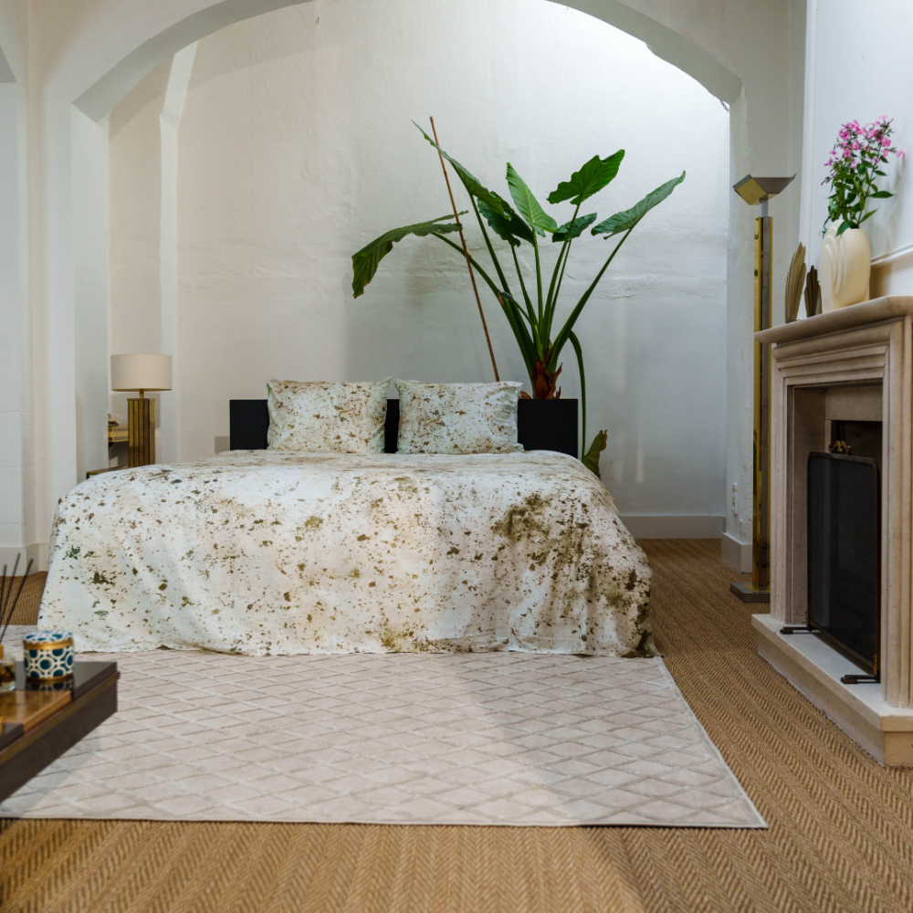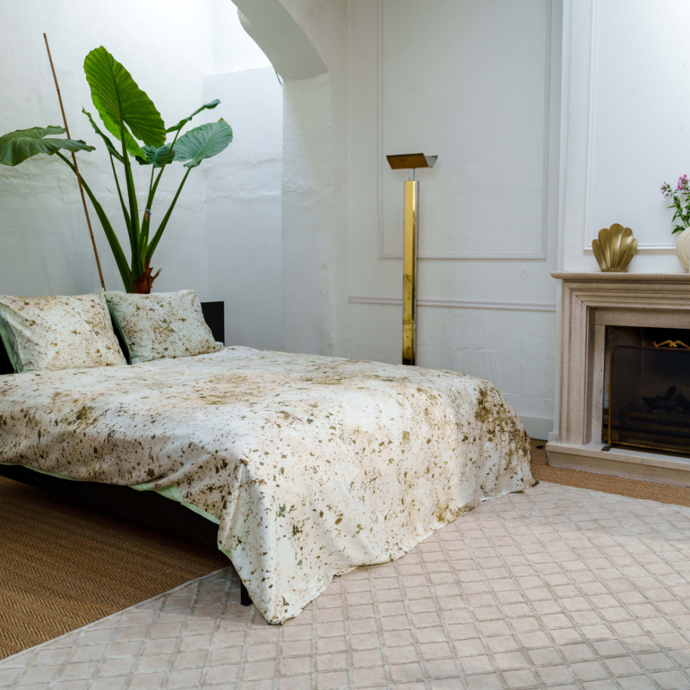 Takara påslakan har ett fläckigt mönster i lugna neutrala färger. De mörka färgerna står ut fint från den benvita bakgrunden. Detta påslakan är tillverkat av 100% bomullssatin, vilket gör påslakanet väldigt mjukt, smidig och len. Satinbindningen skapa en diskret lyxig glans. Påslakanet är paketerat i en påse av samma material: så att du redan har ett smakprov på ditt nya påslakan och en praktiskt påse att använda igen!